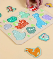 Ši kokybiška medinė įmautė su gyvūnų motyvais – ideali pirmoji dėlionė patiems mažiausiems. Vaikai žaisdami lavina taisyklingą suėmimą, kantrybę ir susikaupimą, dėliodami spalvingus gyvūnėlius į savo vietas.