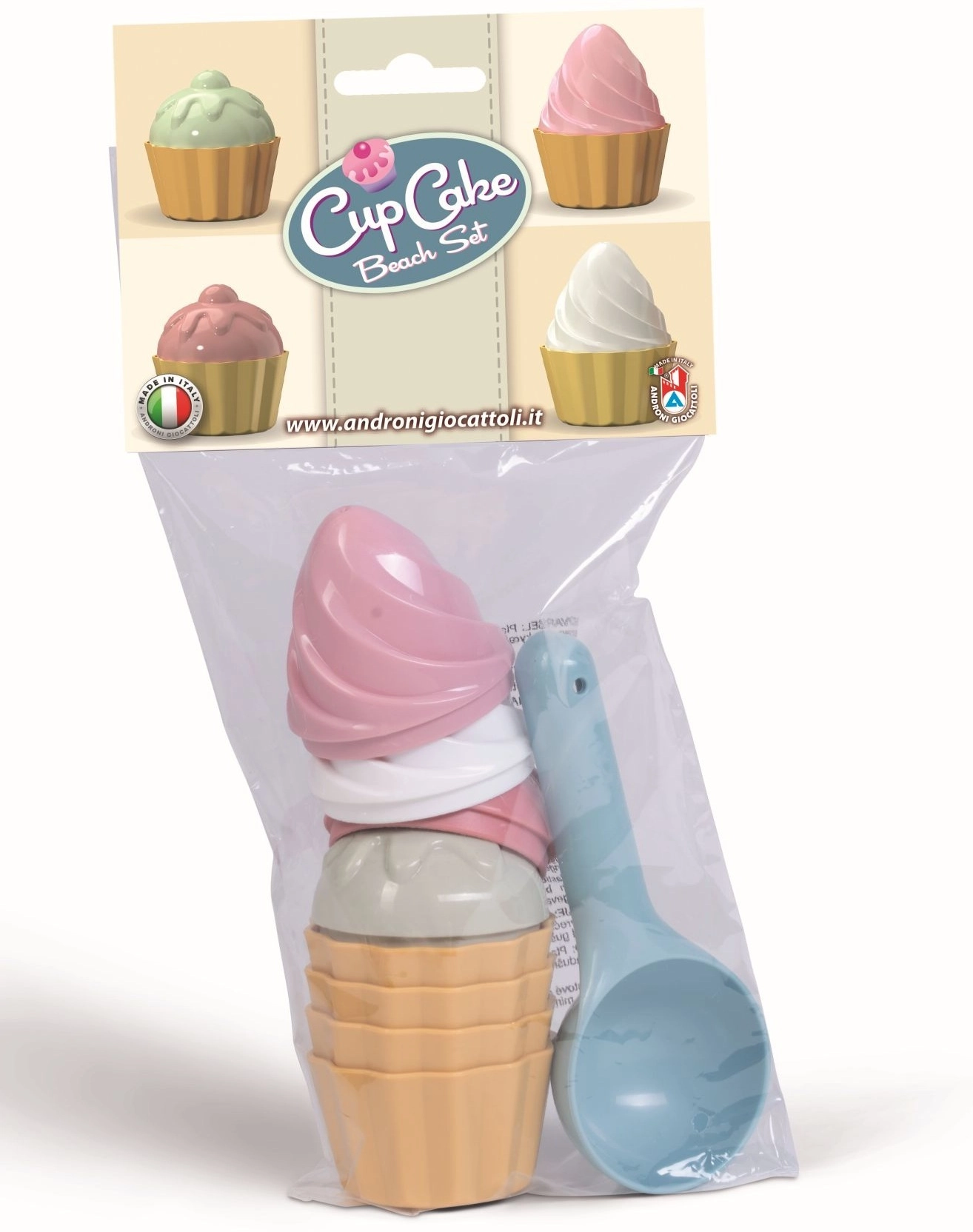 Linksmas 9 dalių rinkinys mažiesiems smėlio skanėstų kepėjams. Smėlio formelės – pyragaičiai iš Androni prekės ženklo apima ledų samtelį ir 8 pyragaičių formas. Pagaminta iš kokybiško plastiko Italijoje, tinka vaikams nuo 10 mėnesių.