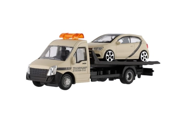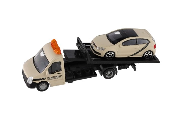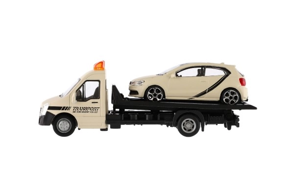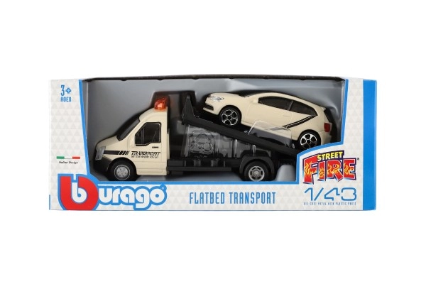 Atraskite realistinį vilkiką su automobiliu masteliu 1:43 iš BBURAGO. Metalo ir plastiko modelis, kurio ilgis 21 cm, pradžiugins mažus vairuotojus ir kolekcininkus. Siūlo detalų apdirbimą, funkcionalią platformą automobiliui užvažiuoti ir puikiai tinka kūrybiniam žaidimui bei kolekcijos plėtimui. Tinka vaikams nuo 3 metų.