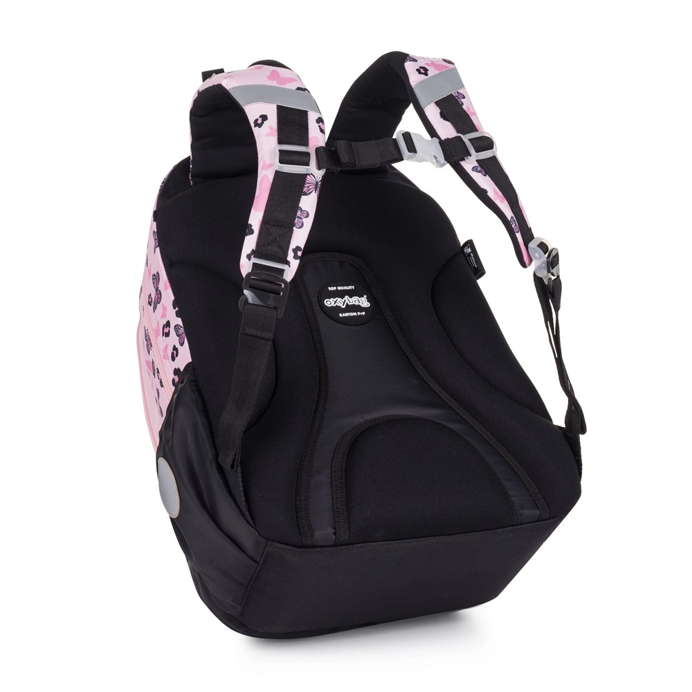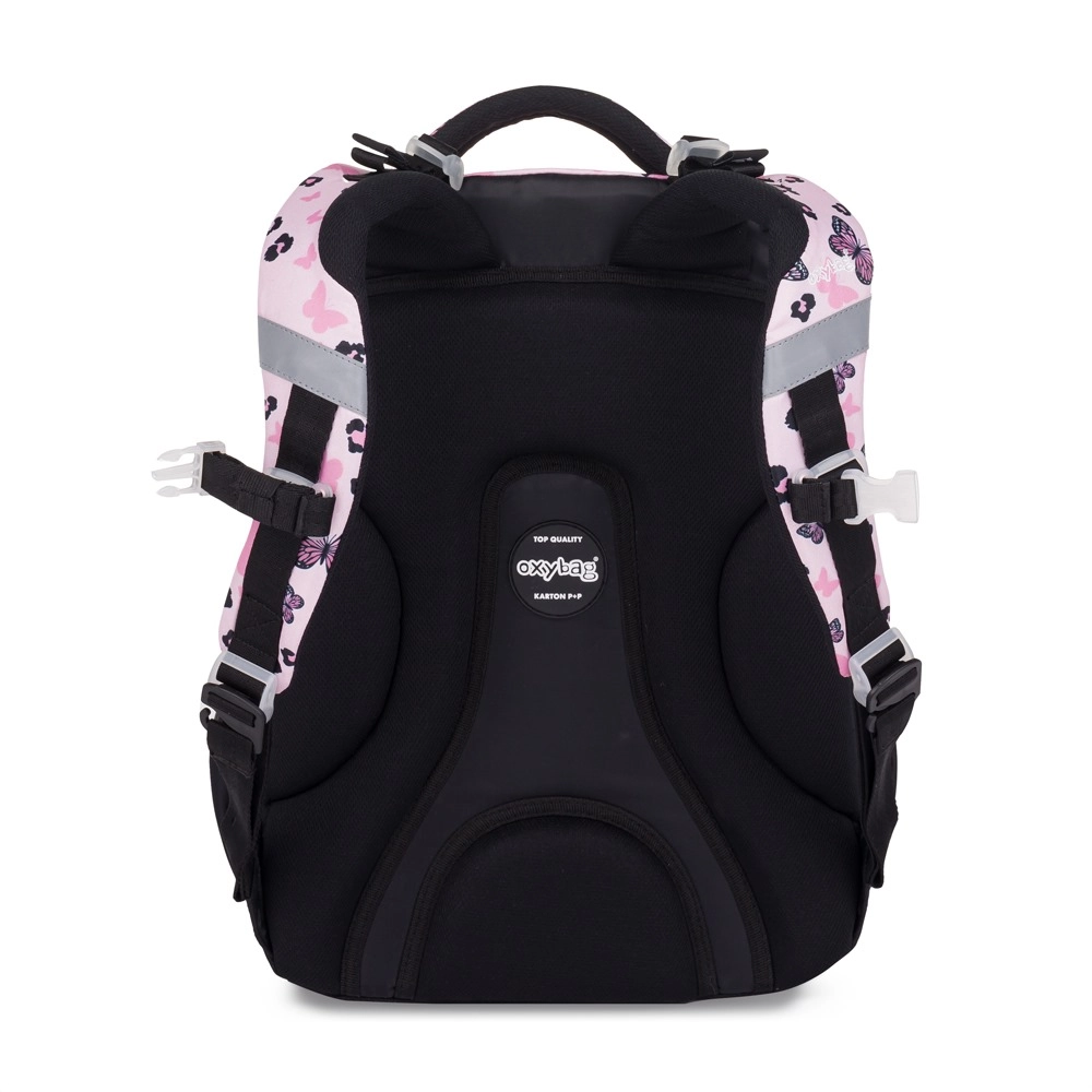 OXYbags prekės ženklo mokyklinė kuprinė idealiai tinka jaunesniems mokiniams. Ji sukurta maksimaliai patogiai, dėka anatomiškai suformuotos nugarėlės ir paminkštintų pečių petnešų. Kuprinė turi krūtinės dirželį geresniam prigludimui prie nugaros.