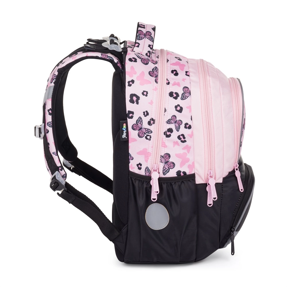 Vaikų saugumas – mūsų prioritetas, todėl kuprinė aprūpinta gausiais atšvaitiniais elementais. Dugno dalis pagaminta iš sutvirtintos neperšlampamos medžiagos, kuri saugo turinį nuo drėgmės. Kuprinė yra lengva, tačiau talpi – net 21 litrų.