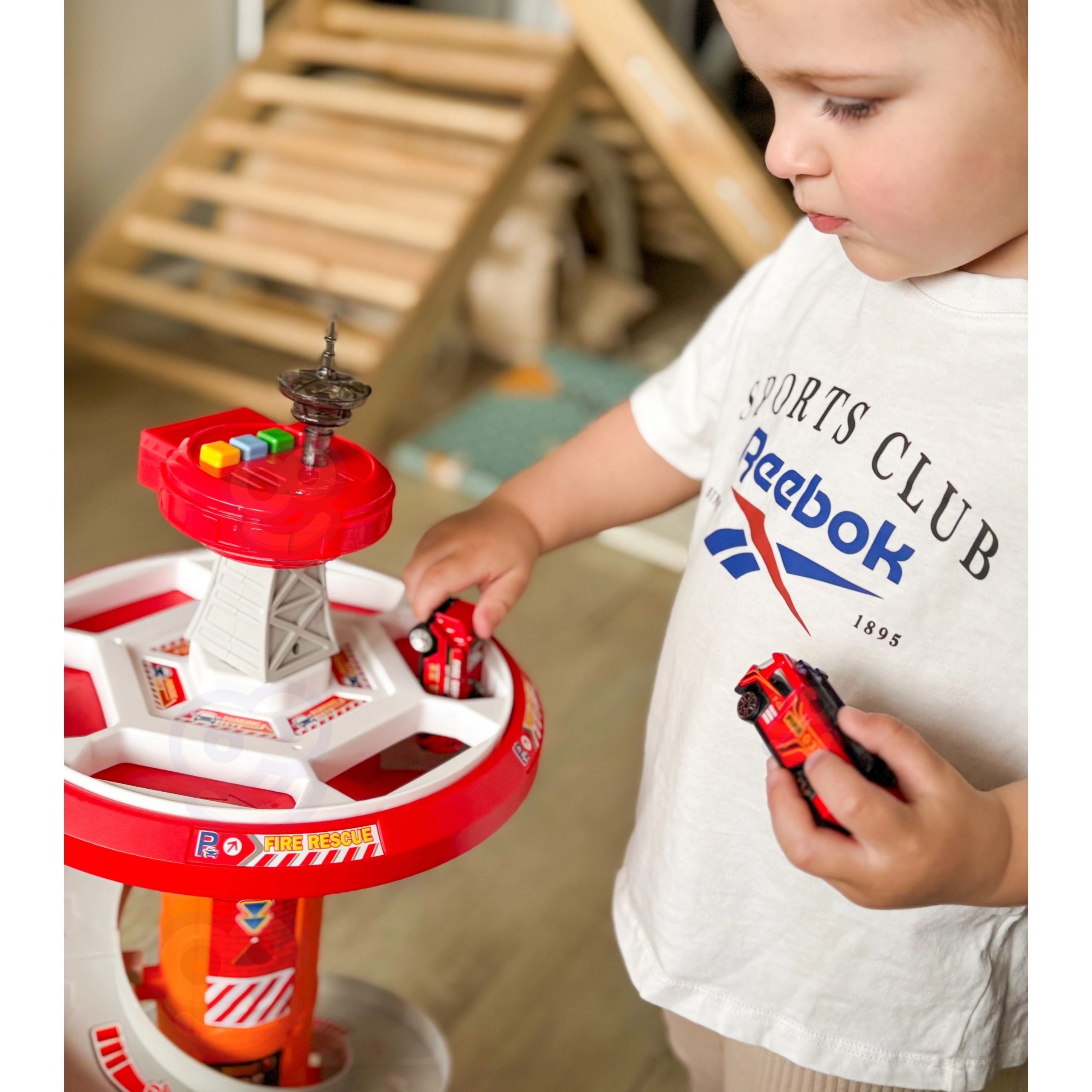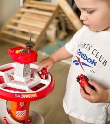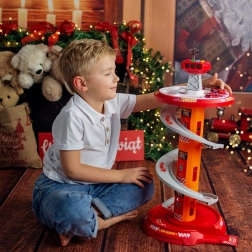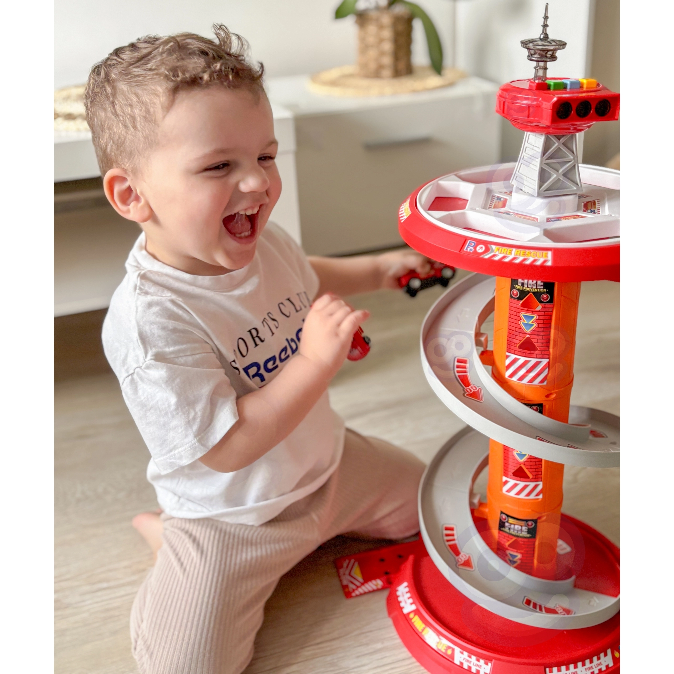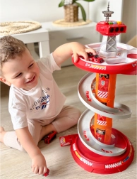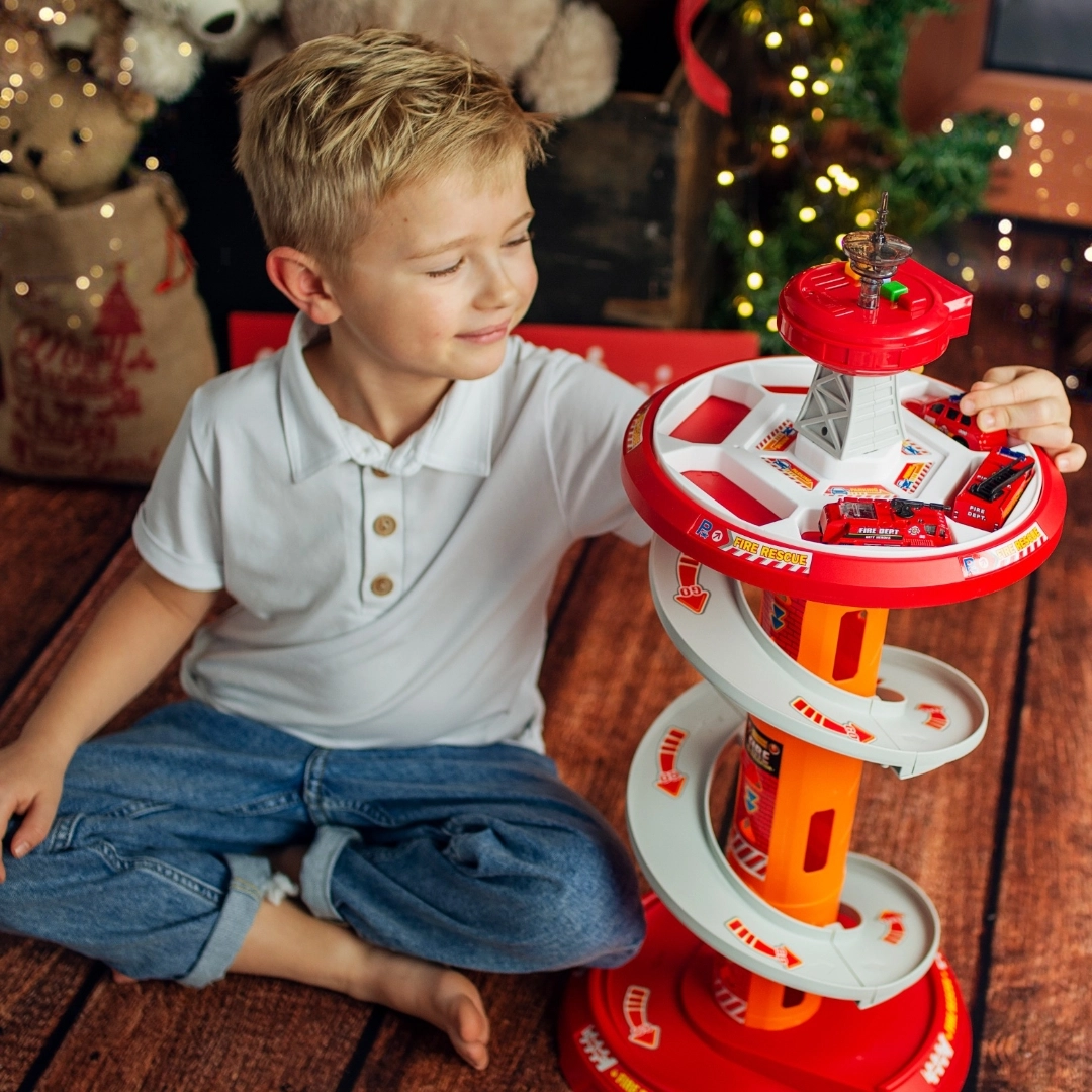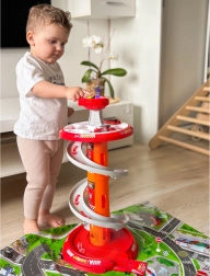 Įsukite pramogas su daugiaaukščiu WOOPIE gaisrinės parkavimu! Stabili bokštinė konstrukcija su spiraline rampa leidžia automobiliukams sklandžiai ir greitai nusileisti nuo viršaus iki bazės. Vaikai lavins smulkiąją motoriką ir vaizduotę, vykdydami iškvietimus pažymėta išvykimo trasa ir pagal kelio ženklus.