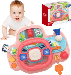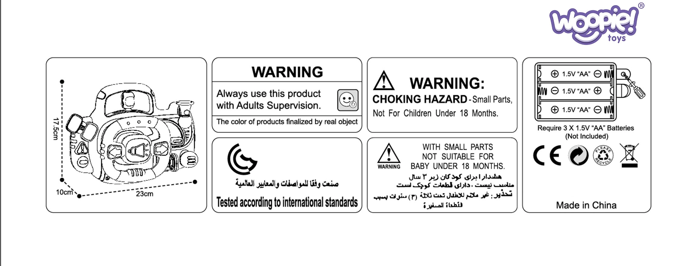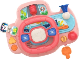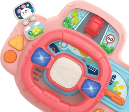 Elektroninis WOOPIE vairas pilnas veiklų ir pramogų. Jis turi mygtukus, šviesas ir garsus, kurie imituoja realistišką vairavimo patirtį, įtraukia ir skatina vaiko vaizduotę. Sukant vairą automobiliukas juda, suteikdamas dar daugiau džiaugsmo jūsų vaikui. Vairas su pultu siūlo 11 funkcijų, užtikrinančių valandas pramogų. Be to, produktą galima sumontuoti dirželiais prie lovelės, automobilinės kėdutės ir daugelyje kitų vietų.