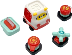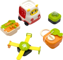 Rinkinyje yra automobilis, prie kurio galima jungti skydelio elementus.