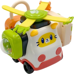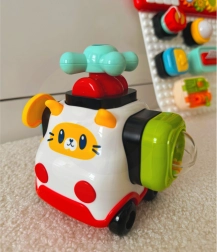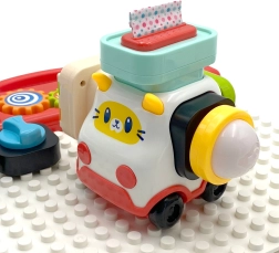 Skydelis sudarytas iš įvairių interaktyvių elementų, kuriuos galima laisvai prijungti ir atjungti, panašiai kaip kaladėles. Rinkinyje taip pat yra katės formos automobilis, prie kurio galima jungti skydelio elementus. Ant prijungiamų kaladėlių yra įvairių tipų jungiklių, ratukų, mygtukų, ištraukiami servetėlių audiniai, spynelė su raktu ir atidaromi langeliai. Šie elementai lavina vaiko motorinius, kognityvinius ir sensorinius įgūdžius, taip pat treniruoja rankos ir akies koordinaciją.