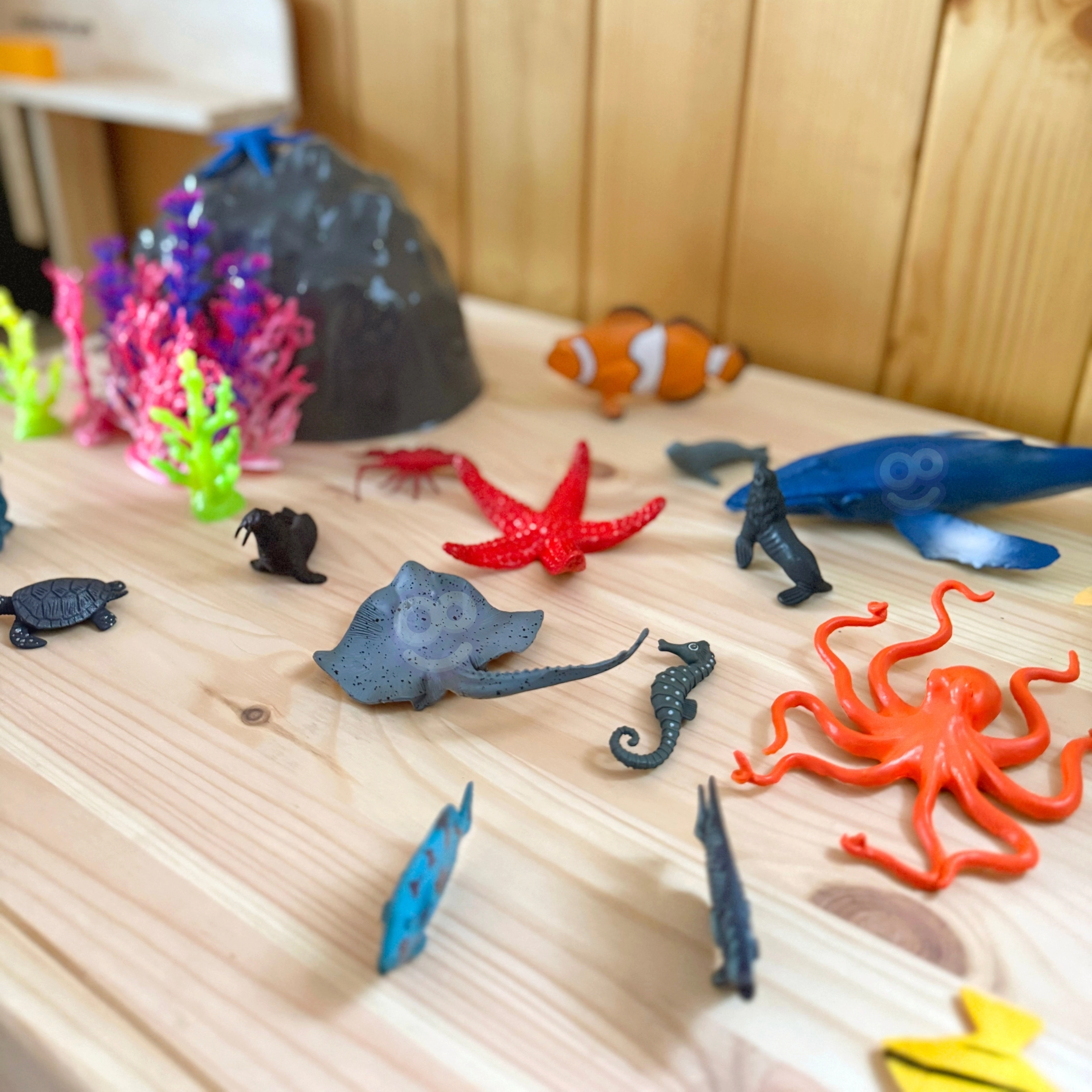Šis išsamus 33 dalių rinkinys nukels vaikus į žavingą vandenyno karalystę. Realistiškos jūrų gyvūnų ir augalų figūrėlės, papildytos žaidimų kilimėliu ir uola, skatina prasmingą žaidimą, vaizduotę ir gamtos pažinimą. Dėl tvirto atlikimo atlaiko ir intensyvų kasdienį žaidimą.