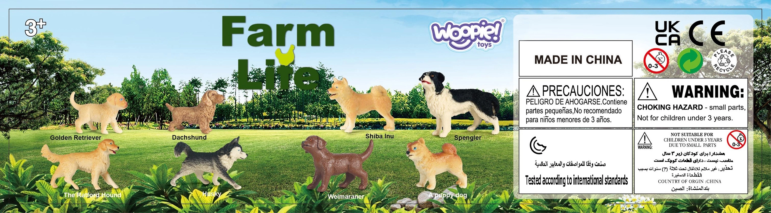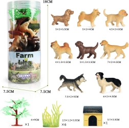 Rinkinys sukurtas taip, kad būtų ir edukacinis, ir smagus – vaikai mokosi atpažinti gyvūnus, lavina smulkiąją motoriką ir socialinius įgūdžius, kurdami istorijas. Komplekte yra viskas, ko reikia miniatiūrinei šunų aplinkai sukurti, įskaitant medį, augalus ir šuns būdą.