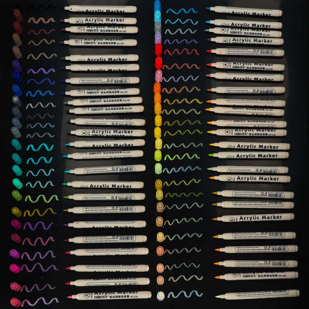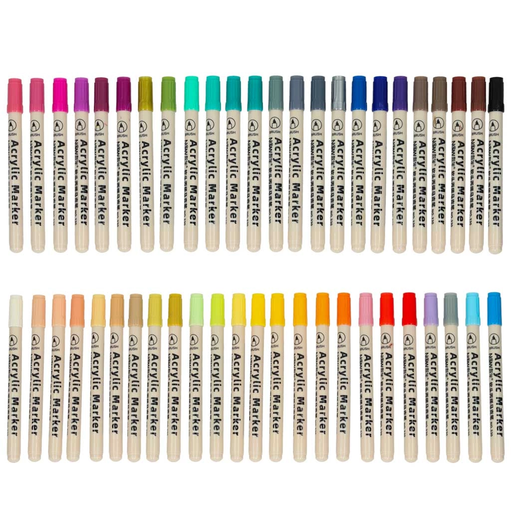 Atrakinkite kūrybiškumą su universaliu 48 akrilinių markerių rinkiniu vaikams ir suaugusiesiems. Aukšta pigmentacija, atsparumas vandeniui, greitas džiūvimas ir saugi, netoksiška vandens pagrindo sudėtis užtikrina ryškias spalvas ir ilgalaikį patvarumą ant tekstiles, stiklo, akmens, medžio ir metalo.
