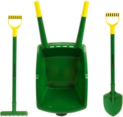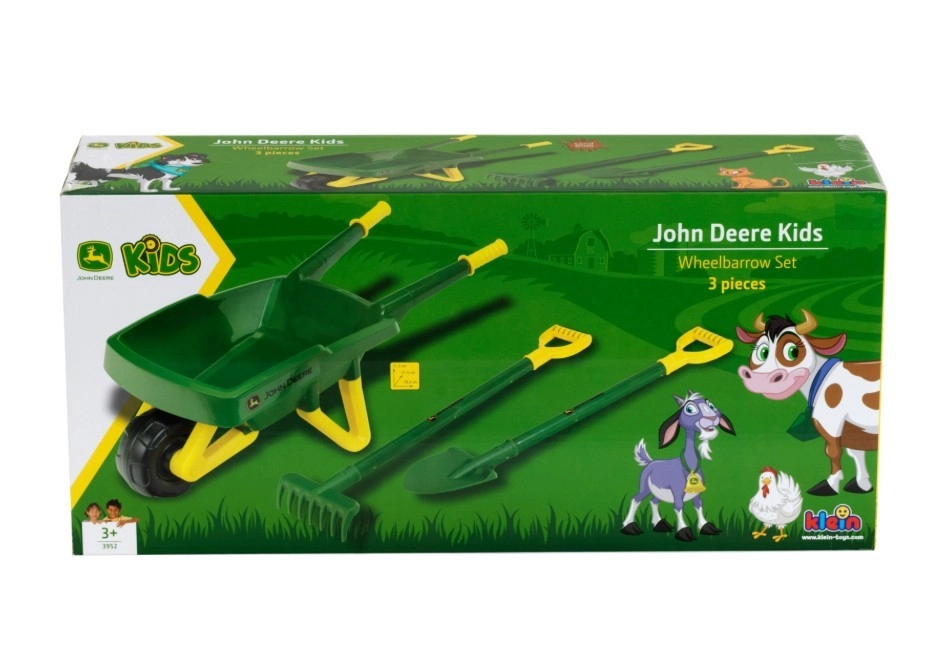 Šis kokybiškas rinkinys, JOHN DEERE ikoniškų spalvų, puikiai tinka vaikams, kurie mėgsta padėti sode. Patvarus karutis su patogia rankena ir lengvas kastuvas su grėbliu pritaikyti vaikiškoms rankoms ir užtikrina saugų bei smagų naudojimą nešant žemę, smėlį, lapus ar žolę.