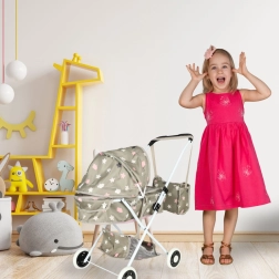 Stilingas gilus lėlių vežimėlis pradžiugins kiekvieną mažą globėją. Jis sukurtas atsižvelgiant į realistišką dizainą ir funkcionalumą, kas skatina vaikų vaizduotę ir kūrybiškumą žaidžiant.