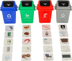 Atraskite išmanų ir žaismingą kelią į ekologiją. Šis edukacinis žaidimas vaikus supažindina su atliekų rūšiavimo principais naudojant keturias spalvotas šiukšliadėžes ir 108 iliustruotas korteles su kasdienio naudojimo daiktais. Mokymasis natūralus, smagus ir motyvuojantis – kas greičiausiai priskirs tinkamas atliekas tinkamai šiukšliadėžei?
