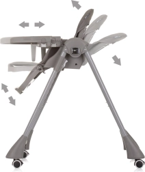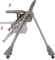 Tėvai įvertins dvigubą padėklą – viršutinį nuimamą greitam valymui ir apatinį su apsaugine T formos strypu maksimaliai saugai. Kėdutę lengvai pritaikysite prie valgomojo stalo dėl 8 aukščio lygių. Keturi ratukai užtikrina mobilumą namuose, o po valgymo ją paprastai sulankstysite į kompaktišką dydį.
