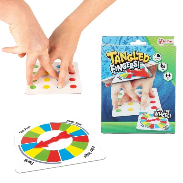 Pasukite rodyklę, sužinokite, kurį pirštą ir kokią spalvą naudoti, ir būkite greitesni už varžovus. Ši žvali pirštų versija populiaraus „susipynimo“ žaidimo suteikia daug juoko ir įtampos mažoje erdvėje – idealiai tinka namuose, svečiuose ir kelionėse.
