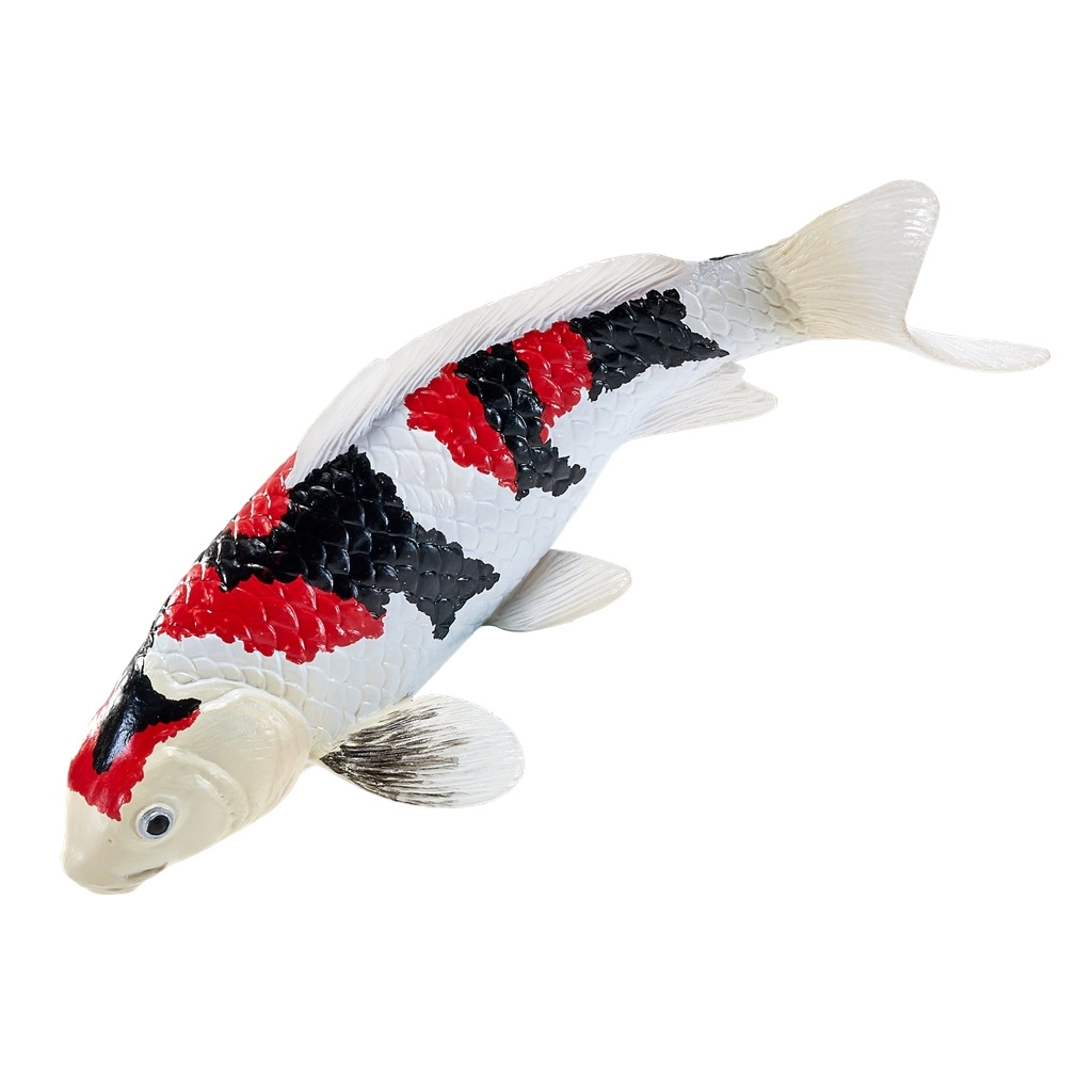 Atraskite japoniško koi karpio grožį Showa Sanshoku variante. MOJO figūrėlė išsiskiria realistiška kūno forma, subtilia žvynų tekstūra ir būdingu juodai–baltai–raudonu raštu. Dėl kruopštaus rankų dažymo ji atrodo autentiškai ir puikiai papuoš vaikų kambarį, gyvūnų kolekciją ar teminę dekoraciją.