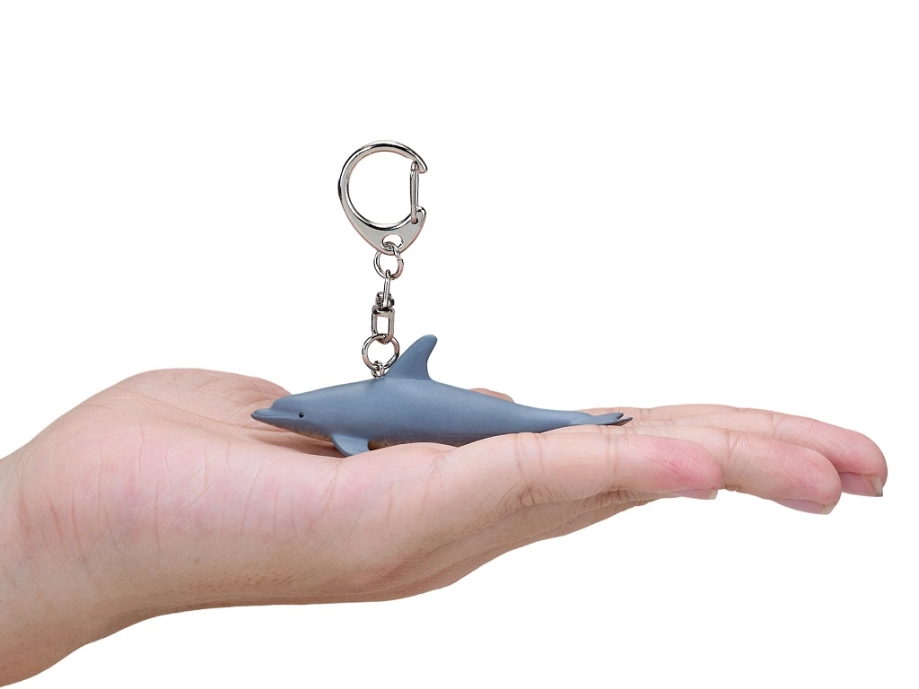 Praktiškas metalinis segtukas leidžia greitai pritvirtinti prie raktų, kuprinės ar piniginės, kad delfinas visada būtų su jumis.