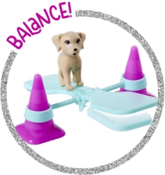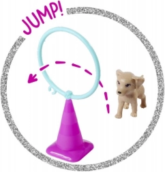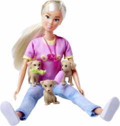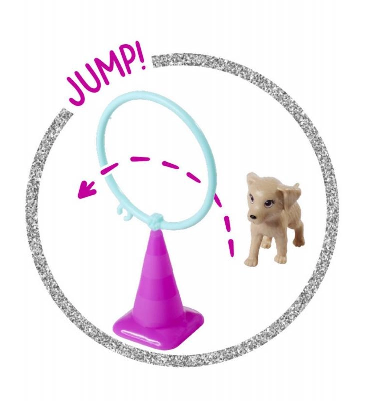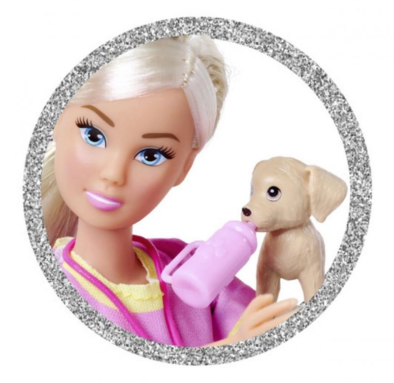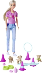 Rinkinyje yra lėlė Steffi, vilkinti rožinį topą ir džinsus, pasiruošusi šunų dresūrai. Kūrybiškas žaidimas visoms amžiaus grupėms.
