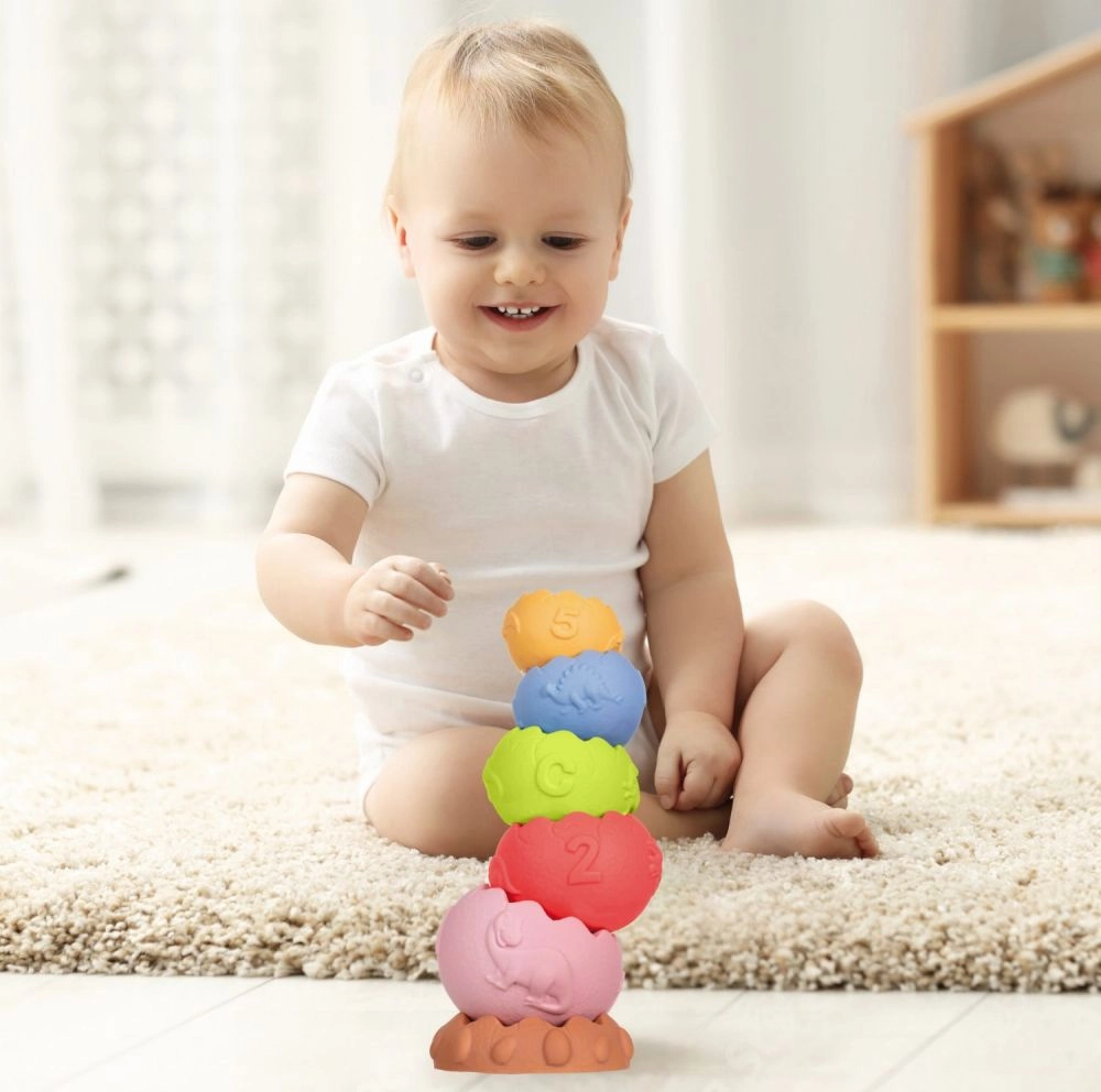 Šis daugiafunkcis rinkinys su apvaliomis, tekstūruotomis detalėmis švelnių pastelinių spalvų yra idealus pirmajam atradimui ir rūšiavimui. Vaikai gali dėlioti detales vieną ant kitos, sugriebti, spausti ir tyrinėti reljefinius skaičius bei formas, taip natūraliai lavindami motorinius įgūdžius ir ankstyvąjį matematinį suvokimą.