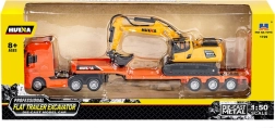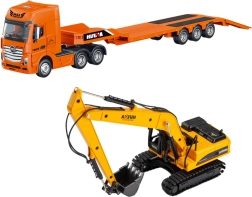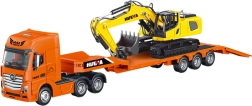 Sunkvežimio su žemagrinde priekaba ir ekskavatoriumi modelis yra tiksli transporto priemonės, skirtos sunkiai statybinei technikai gabenti, replika. Pagamintas iš aukštos kokybės metalo ir patvaraus ABS plastiko, šis modelis derina tvirtą konstrukciją, ilgaamžiškumą ir preciziškumą.