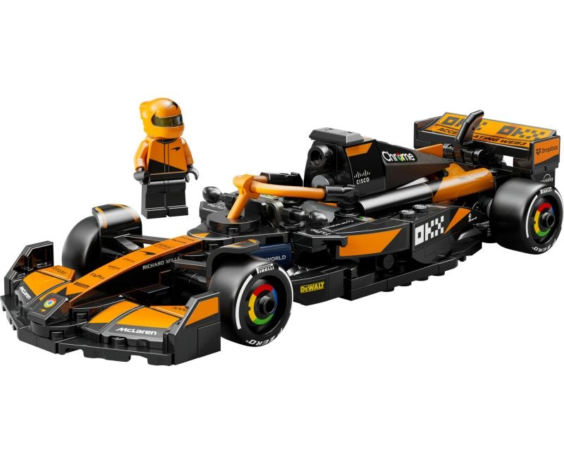 Sukurkite ikoninį 2024 m. sezono vienvietį bolidą su LEGO Speed Champions McLaren F1 Team MCL38 rinkiniu. Šis rinkinys, skirtas vaikams nuo 10 metų ir suaugusiems gerbėjams, siūlo autentiškas detales, tokias kaip atsiveriantis kokpitas su apsauginiu lanku (halo), galinis sparnas, rėmėjų lipdukai ir platesnės galinės Pirelli padangos. Taip pat yra McLaren lenktynininko minifigūrėlė akimirksniu lenktynių nuotykiams ir puikiam eksponavimui.