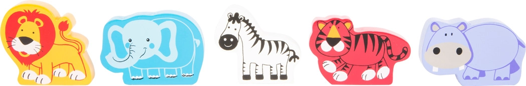 Lokomotyvas ir vagonėliai jungiasi magnetais, todėl vaikai lengvai perkrauna gyvūnėlius ir kuria savo zoologijos sodo istorijas.