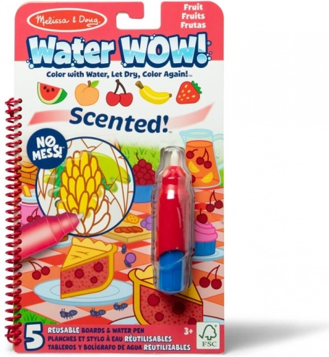 Kvepiančios vandens spalvinimo knygelės Water WOW! suteikia vaikams kūrybišką pramogą be dažų ir dėmių. Sudrėkinus paveikslėliai su vaisių motyvais akimirksniu nusispalvina, o išdžiūvę išnyksta, todėl galima naudoti vėl ir vėl. Kompaktiškas spiralinis bloknotas su pridėtu vandens rašikliu – puikus kelionių palydovas.