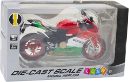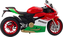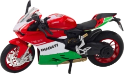 Itin tiksliai pagamintas metalinis sportinio motociklo modelis – idealus pasirinkimas kolekcionieriams, automobilių sporto gerbėjams ir vaikams, mėgstantiems dinamiškas transporto priemones. Su judančiu vairu, amortizacija ir besisukančiais ratais šis modelis suteikia autentišką važiavimo ir manevravimo pojūtį. Dėl savo raudonai baltai žalio dizaino, įkvėpto itališkų lenktyninių motociklų, jis tinka ne tik kaip žaislas, bet ir kaip stilinga dekoracija.