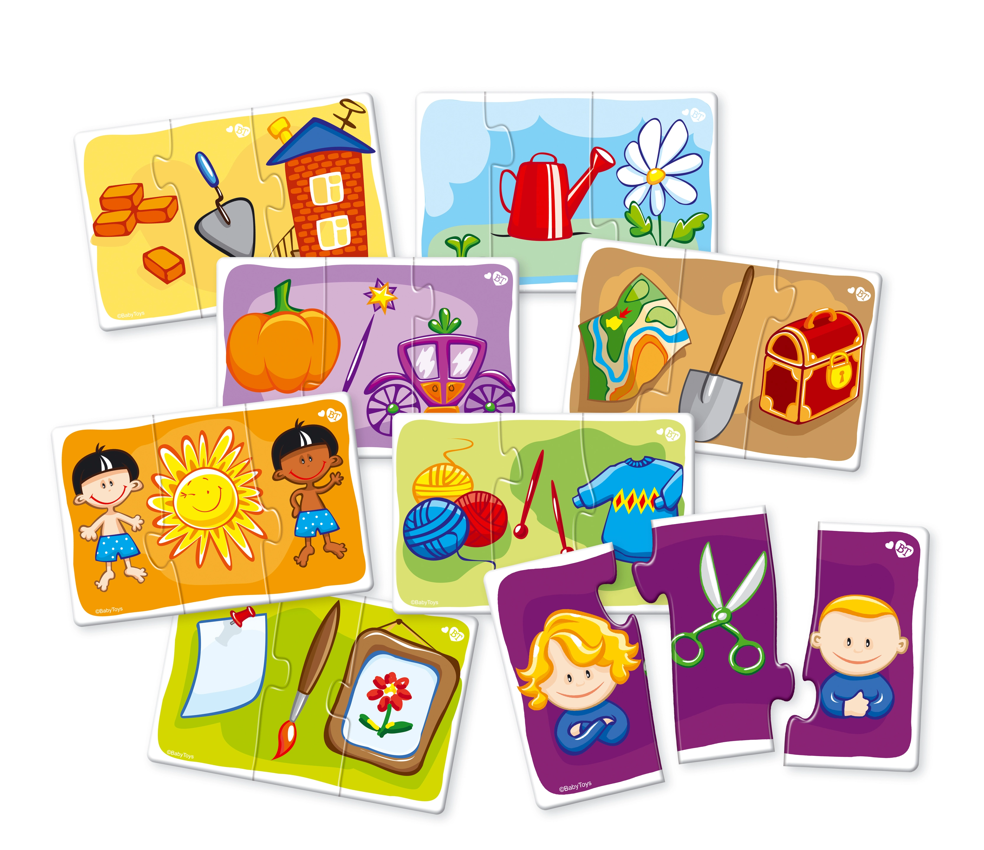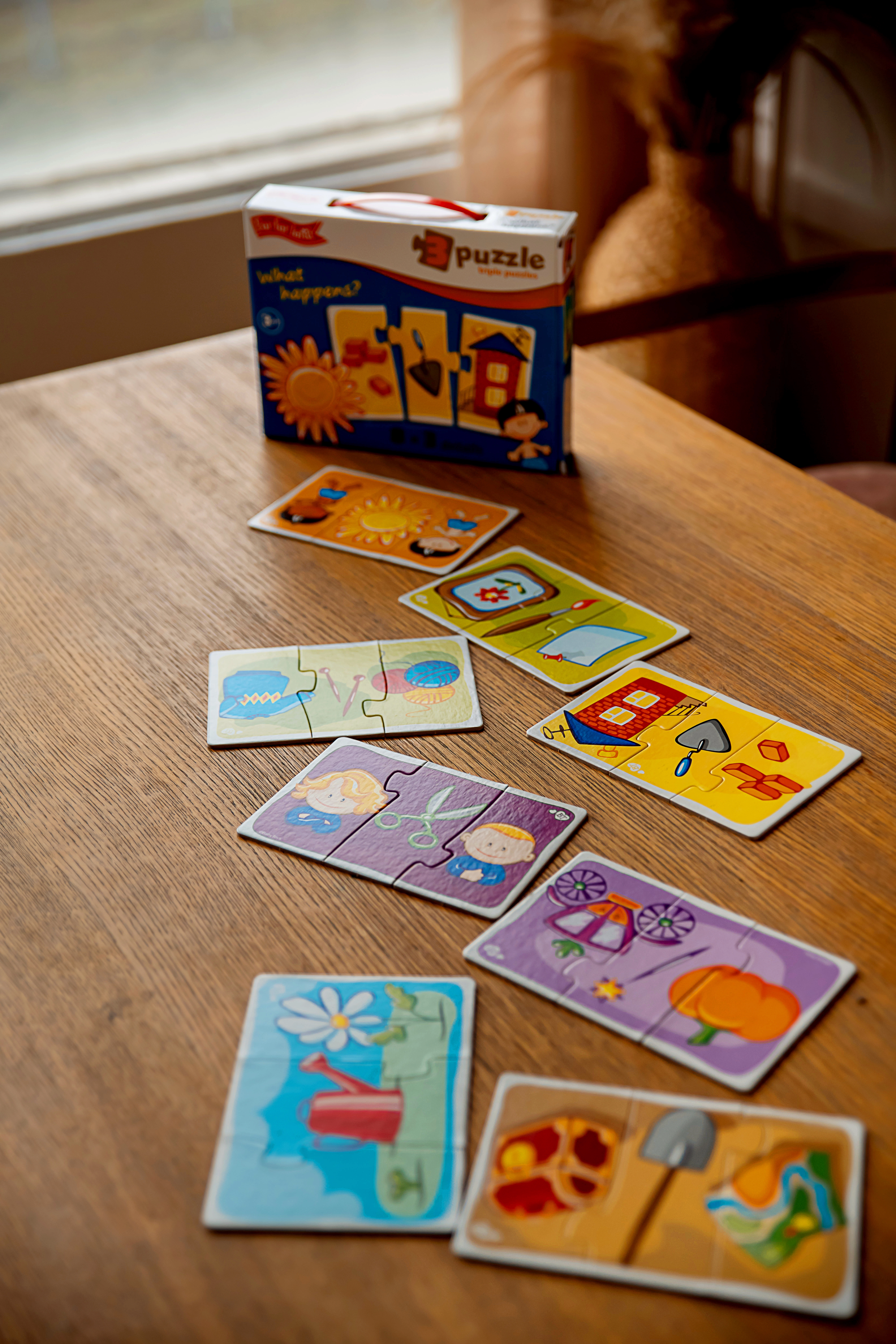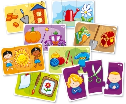 - 8 teminiai paveikslėliai iš trijų dalių – lengva pirmajai dėlionei