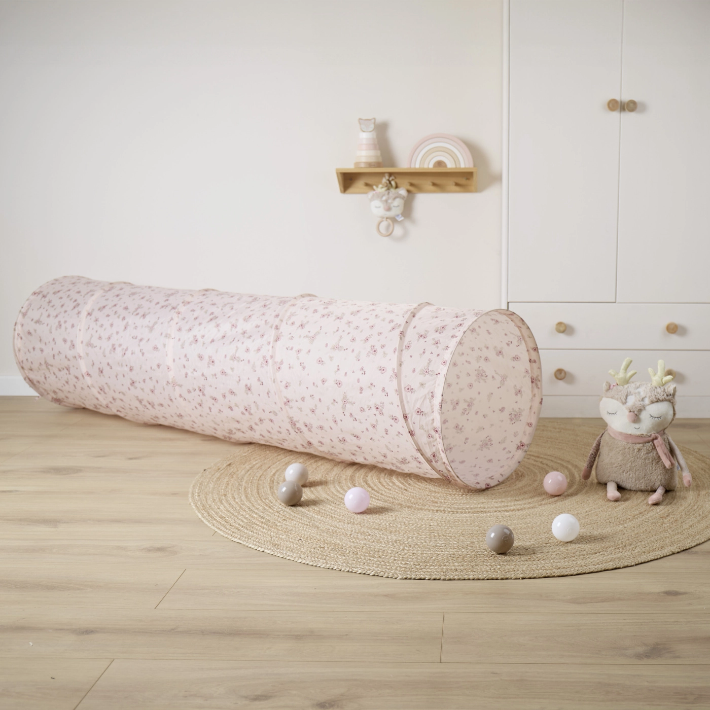 Savaime išsiskleidžiantis žaidimų tunelis – idealus mažiems nuotykių ieškotojams. Lengvai sulankstomas ir patvarus, puikiai tinka žaidimams namuose ir lauke, su gražiu švelniu gėlių raštu.