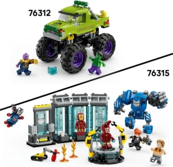 LEGO MARVEL monstrų sunkvežimis Hulk vs Thanos (76312) – veiksmo konstruktorius vaikams nuo 7 metų, kuriame yra milžiniškas monstrų sunkvežimis su amortizacija, minifigūrėlės Hulko ir Tano bei ikoniniai priedai, tokie kaip Teseraktas ir Begalybės pirštinė. Puikus pasirinkimas Keršytojų, didelių automobilių ir kūrybinio konstravimo gerbėjams.