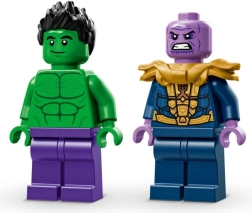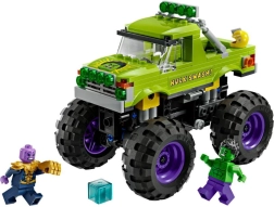Pastatykite herojišką monstrų sunkvežimį, pasirengusį bet kokiai misijai. Atidaroma kabina slepia vietą Hulko minifigūrėlei, milžiniški ratai ir amortizuota pakaba lengvai įveiks bet kokį reljefą, o užrašas Hulk Smash! suteiks automobiliui išskirtinį stilių. Taip pat rasite įspūdingą Taną su Begalybės pirštine ir Teseraktu epinėms gėrio ir blogio dvikovoms.