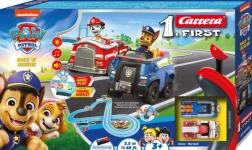 Lenktynių pramogos patiems mažiausiems! CARRERA FIRST su PAW Patrol licencija siūlo 3,5 m ilgio trasą su interaktyviomis šviesomis ir garsais, dviem automobiliais (Chase ir Marshall) ir greičio valdikliais. Dėl lengvo surinkimo, magnečių ir kontaktinių šepetėlių automobiliai puikiai laikosi trasoje. Ideali baterijomis maitinama trasa vaikams nuo 3 metų.