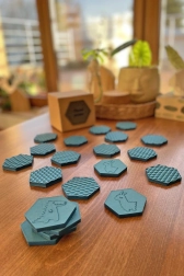 - Sudėtyje yra 10 porų gyvūnėlių ant putų heksagono.