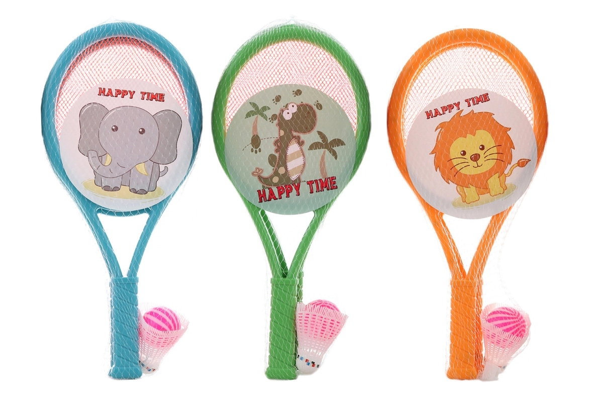 Smagus plastinių rakečių rinkinys visai šeimai. Pakuotėje yra dvi raketės, kamuoliukas ir badmintono plunksniukas, tinkantys universaliam žaidimui tiek lauke, tiek namuose. Kompaktiški matmenys, lengva konstrukcija ir saugus naudojimas nuo 3 metų.