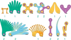 - Specialios detalės: sparnai, plunksnos, snapai; instrukcijų brošiūra