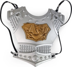 Šalmas, šarvai, kardas ir skydas sudaro vientisą rinkinį, su kuriuo vaikas pasiruošęs bet kokiam nuotykiui – nuo karnavalo iki namų mūšių.