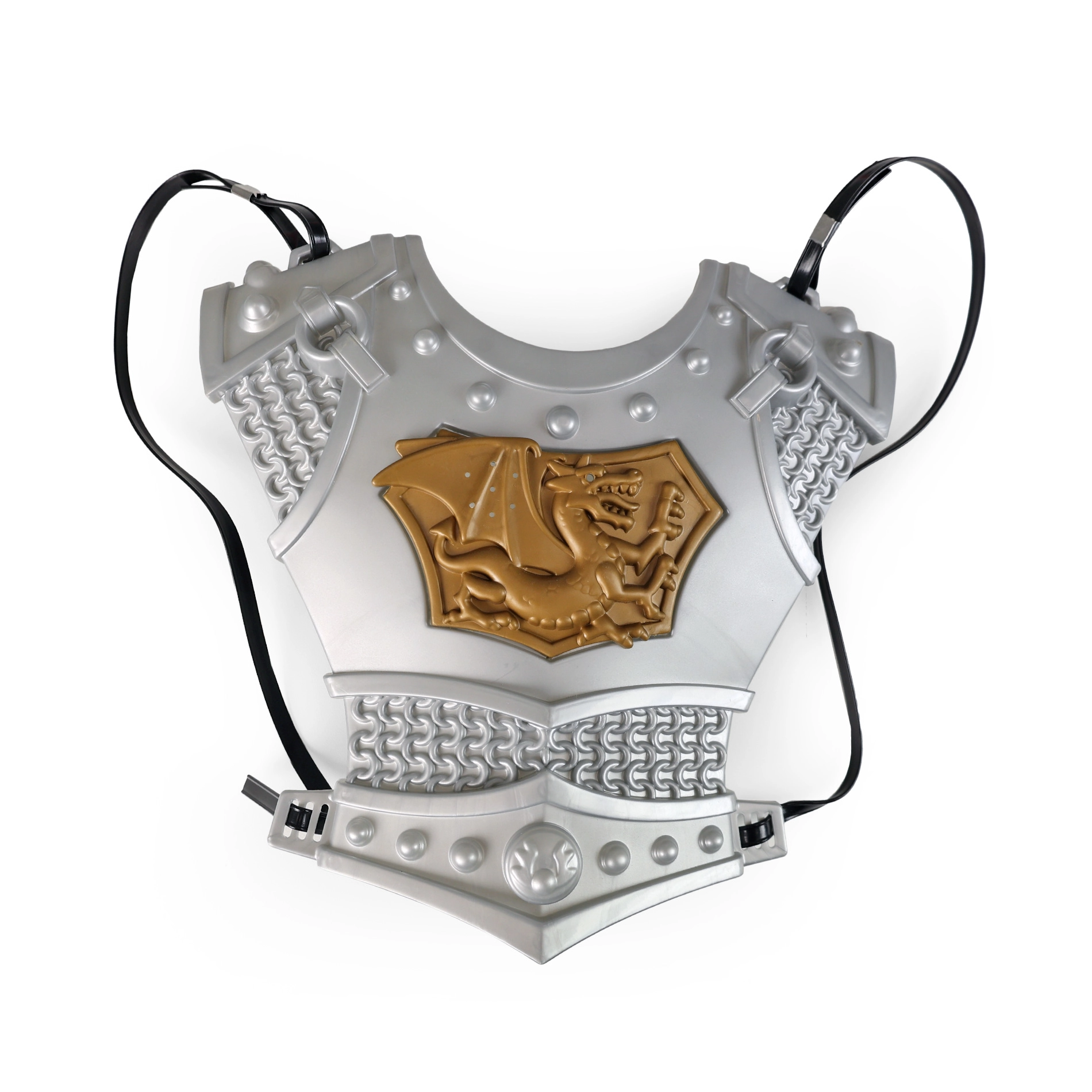 Šis didelis riterio rinkinys kiekvieną vaiką pavers drąsiu karalystės sergėtoju. Lengva konstrukcija ir patvarus plastikas užtikrina patogų dėvėjimą ir saugų žaidimą. Realistiškos detalės, tokios kaip auksinis drakonas ant skydo ir šarvų, suteikia kiekvienam mūšiui viduramžių žavesio.