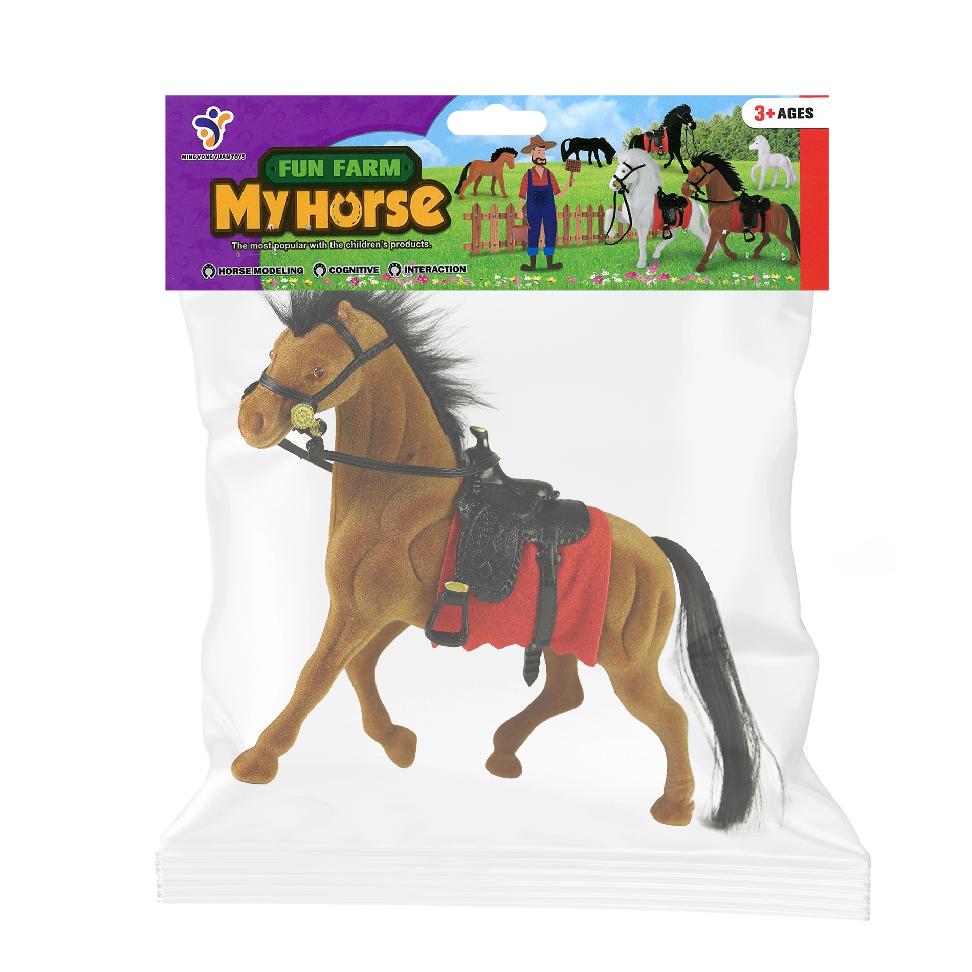 Arkliukas aprūpintas balnu ir kamanomis, todėl vaikai gali vaidinti tikrus raitelius ir kurti savo pasakojimus.