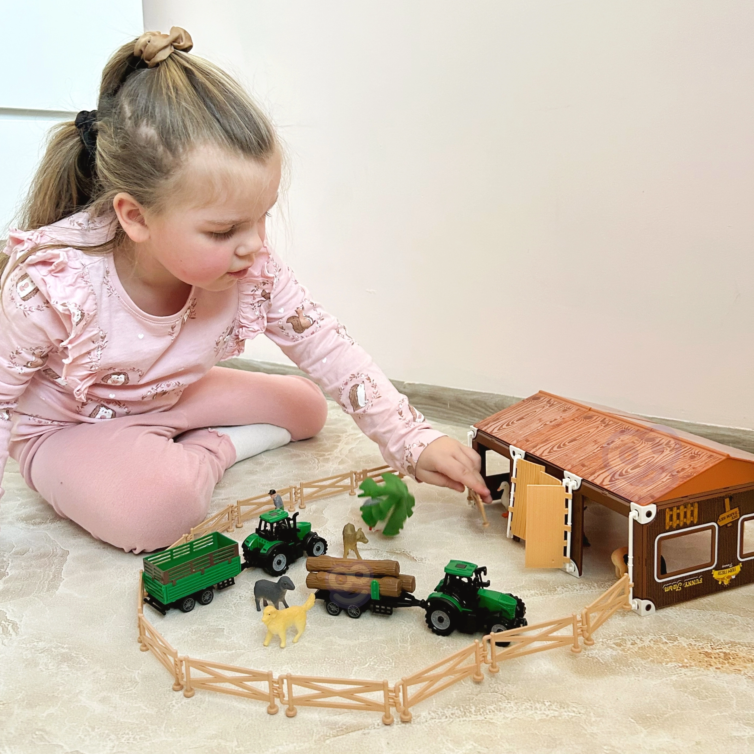 Vaikai lavina smulkiąją motoriką, žodyną ir vaizduotę. Žaidimas su figūrėlėmis ir transporto priemonėmis skatina pasakoti istorijas ir mokytis apie gyvenimą ūkyje.