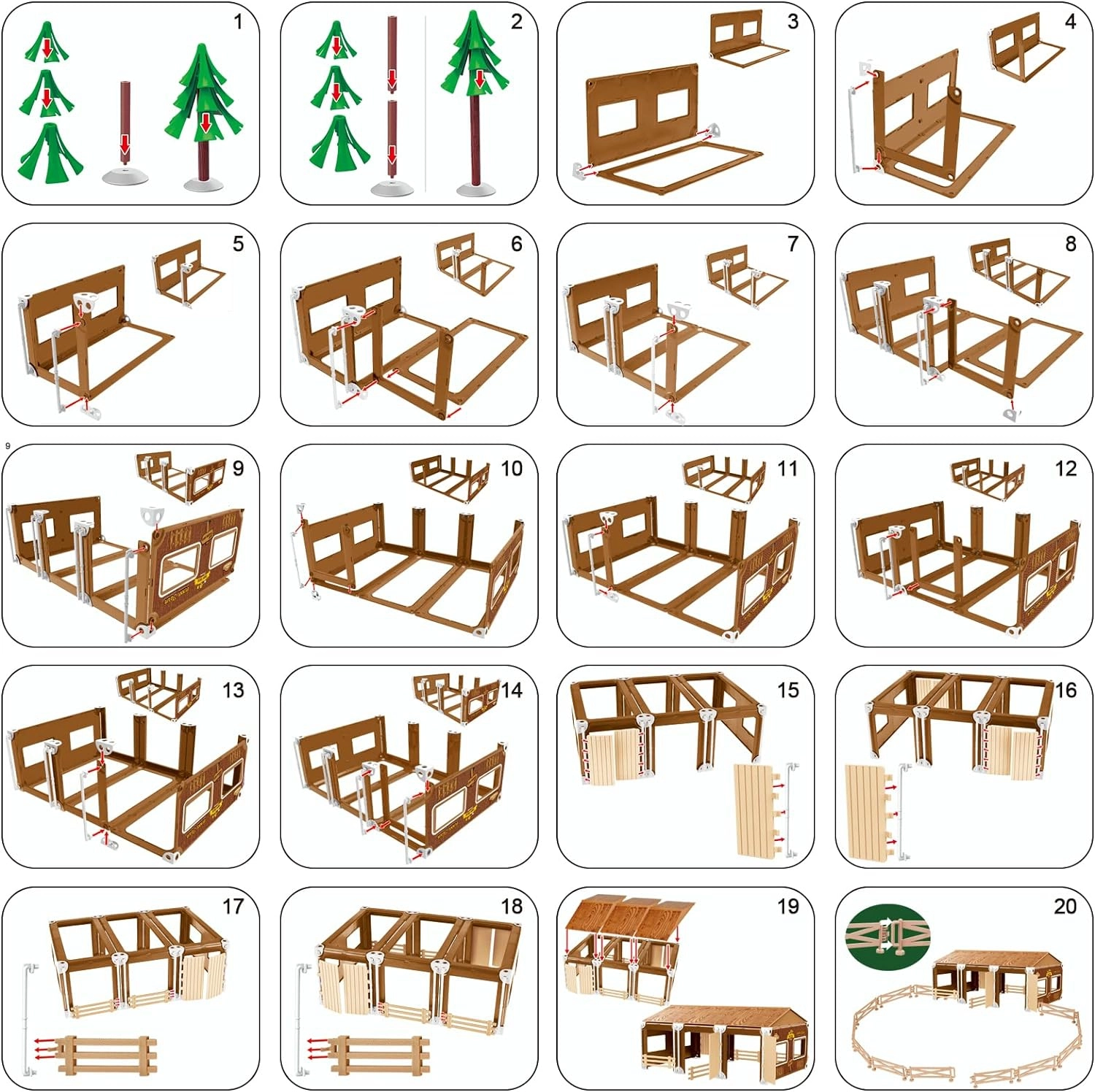 Atraskite turtingą ūkininko rinkinį vaikams nuo 3 metų, kuriame yra net 94 dalys – gyvūnėliai, traktoriai su priekabomis, ūkininkų figūrėlės ir tvartas su turėklais. Kokybiškas apdirbimas be aštrių briaunų yra saugus vaikams ir skatina kūrybišką žaidimą, lavina smulkiąją motoriką bei padeda mokytis žodyno apie gyvenimą ūkyje. Praktiška pakuotė su rankena užtikrina lengvą nešiojimą ir tvarkymą.