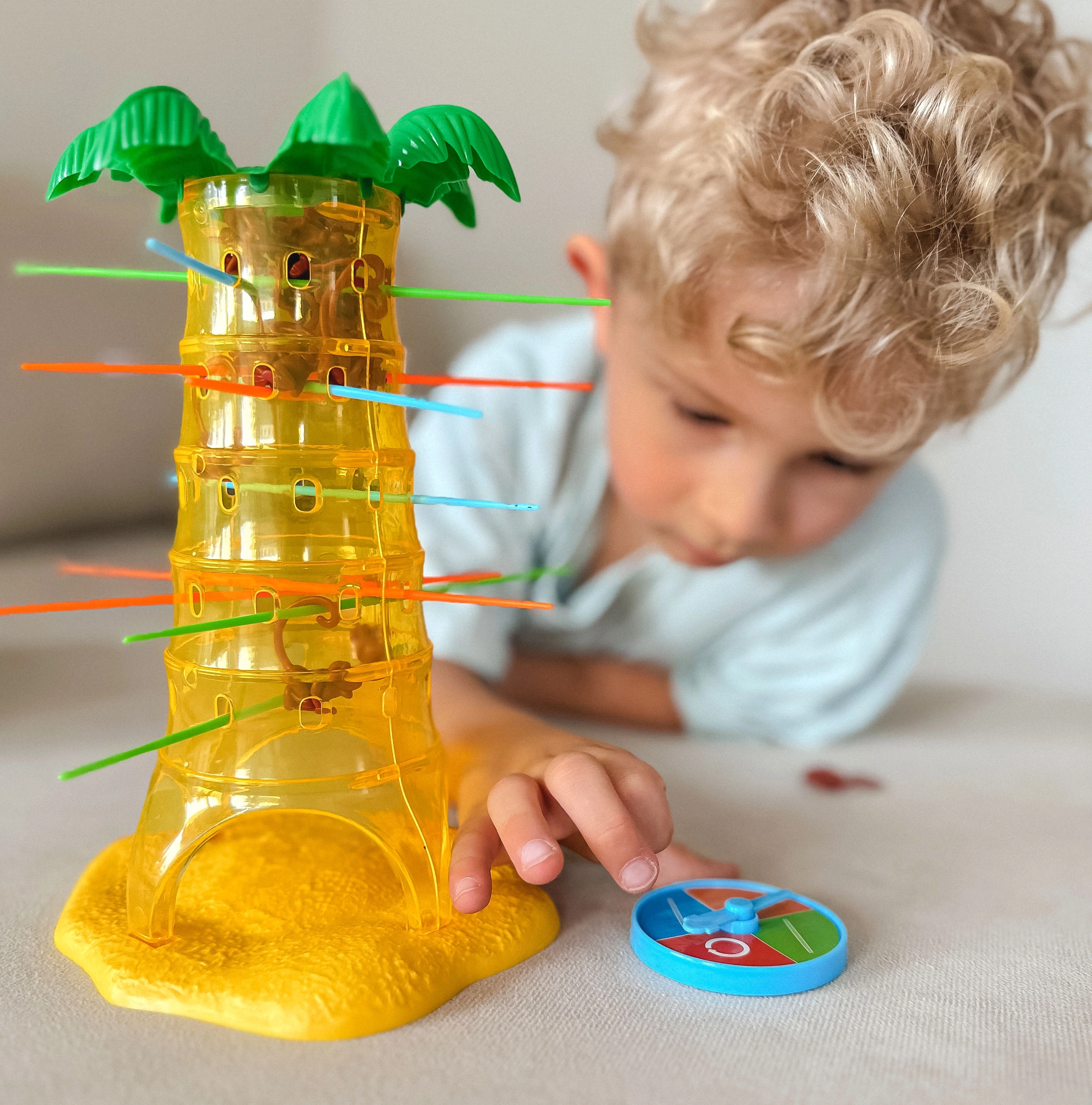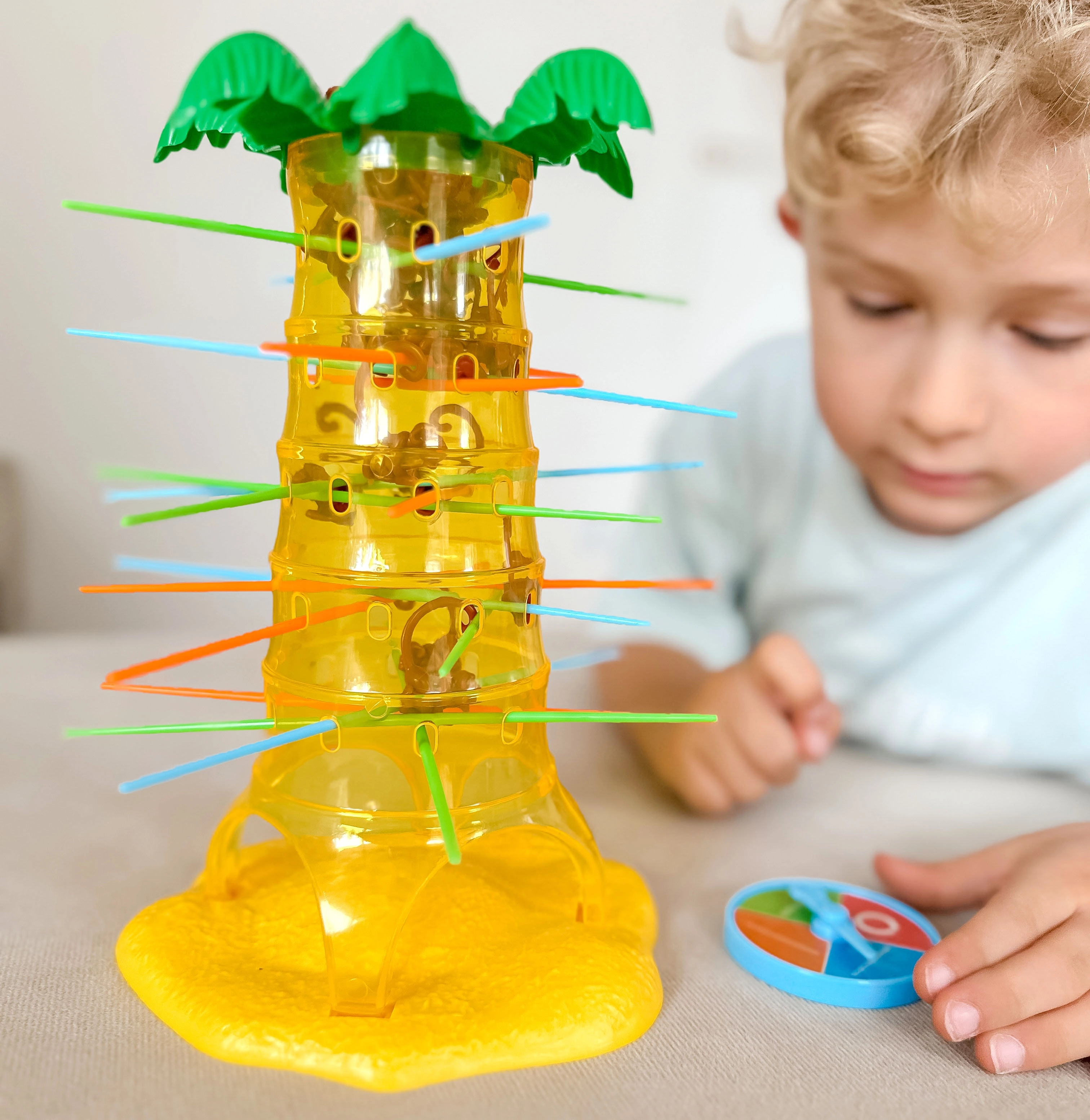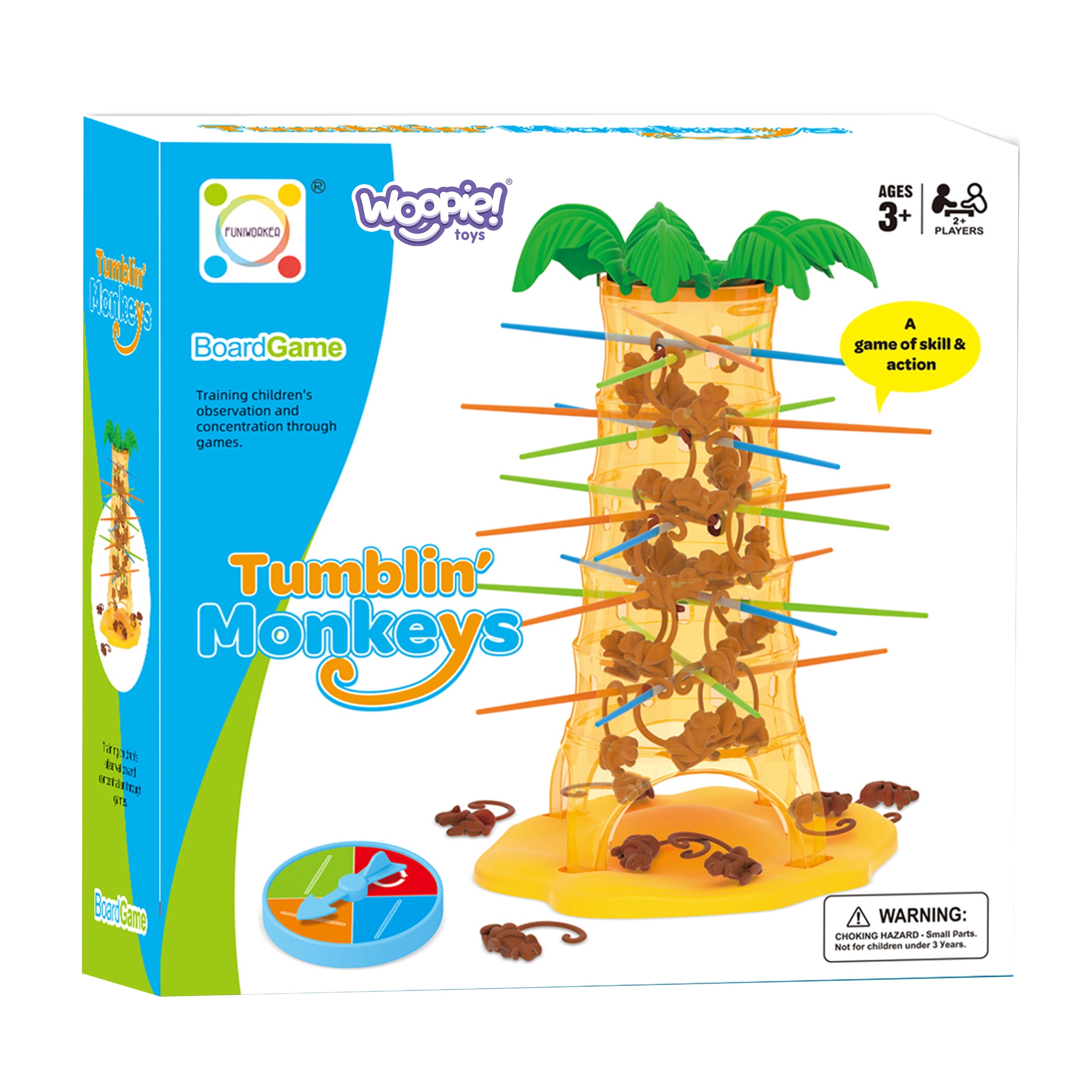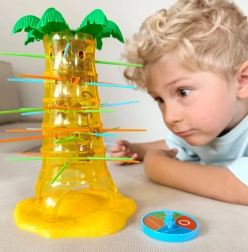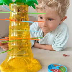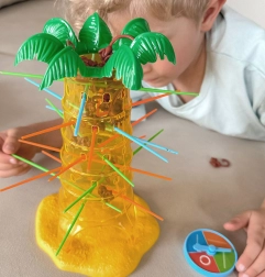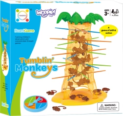 Šiame nuostabiame Woopie prekės ženklo žaidime jūs įstatote lazdeles į palmės angas ir kabinate ant jų beždžionėles. Kiekvieną ėjimą sukite ratuką, o rodyklė nurodys, kurią lazdelę privalote ištraukti. Tikslas – kuo ilgiau išlaikyti beždžionėles ant palmės ir nepriversti jų nukristi. Laimi tas, kuris numeta mažiausiai beždžionėlių.