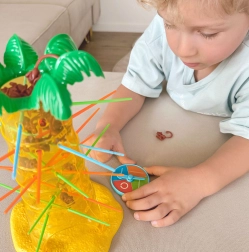 Žaidimas lavina smulkiąją motoriką ir gerina vaikų akių-rankų koordinaciją.