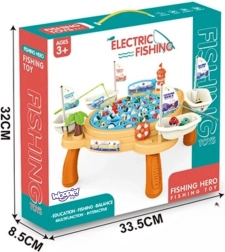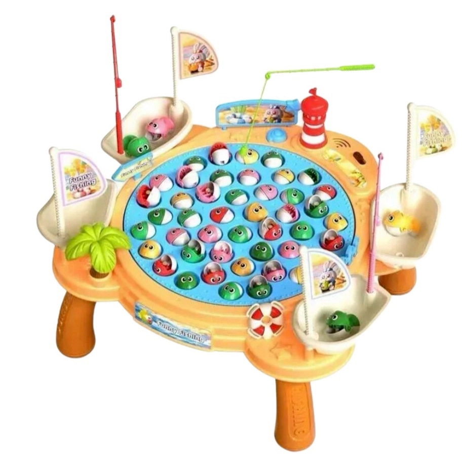Komplektacija: sulankstomas stalas, 4 meškerkočiai, žuvelės.