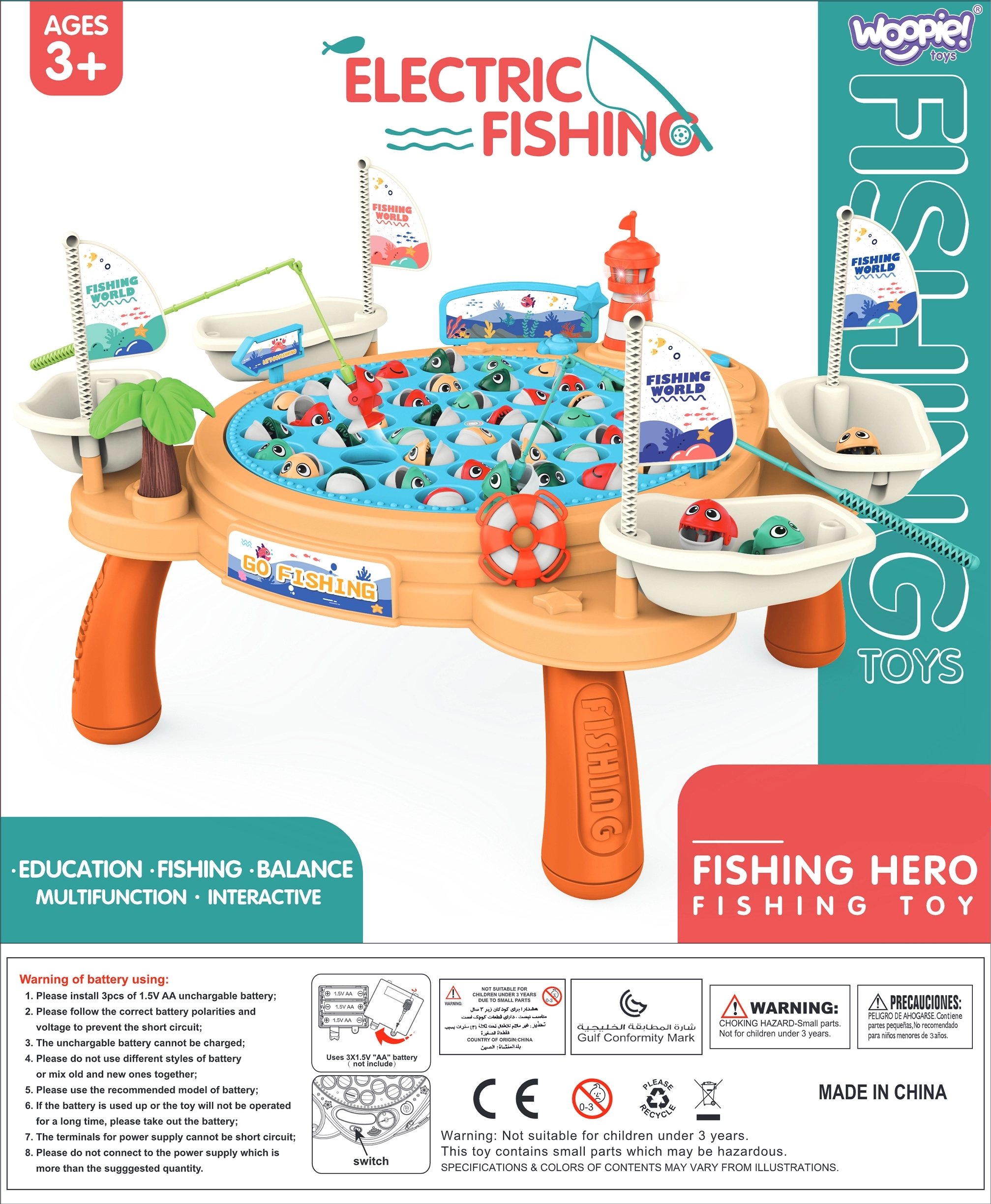 Interaktyvus žvejybos stalas „Piratinis laivas“ iš Woopie puikiai tinka vaikams nuo 3 metų. Šis smagus ir edukacinis produktas skatina smulkiosios motorikos, kantrybės ir socialinių įgūdžių ugdymą. Vaikai gali mėgautis garso efektais ir dinamišku stalo sukimu, kuris didina žaidimo patrauklumą. Stalas sukurtas žaisti iki keturių žaidėjų, iš kurių kiekvienas turi savo meškerkotį ir piratinį laivą sugautoms žuvelėms laikyti.