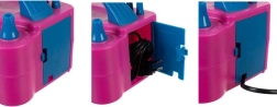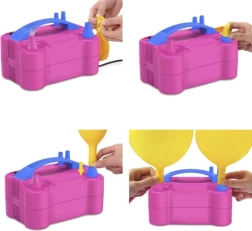 Ji aprūpinta dviem antgaliais vienalaikiam dviejų balionų pripūtimui, kas ženkliai taupo laiką ir pastangas pasiruošimo metu. Praktiškas kabelio laikymo skyrelis ir nešiojamas dizainas su rankena daro pompą idealiu pagalbininku kiekvienam renginių organizatoriui.