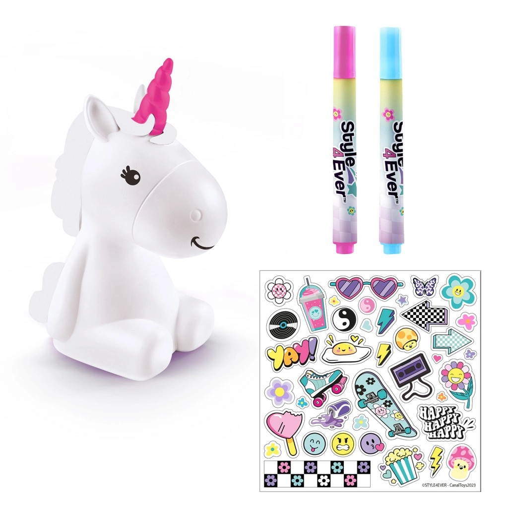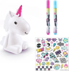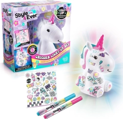 Suteikite vaikų kambariui žavesio su kūrybiniu rinkiniu Style4Ever šviečiantis vienaragis, kurį vaikai gali dekoruoti patys. Užbaigtas vienaragis šviečia 8 spalvomis ir sukuria jaukų atmosferą. Pakuotėje yra šviečianti figūrėlė, 4 flomasteriai, lipdukai ir paprastas vadovas, be to, baterijos įtrauktos. Tinka nuo 6 metų.