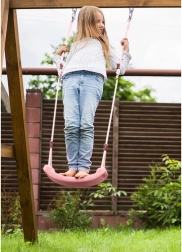 Pradžiuginkite vaikus stilingomis sūpynėmis pudros rožinės spalvos. Profiliuota sėdynė užtikrina komfortą, o tvirti lynai su tolygiu 105–175 cm ilgio reguliavimu leidžia idealiai pritaikyti tiek viduje, tiek lauke. Konstrukcija sukurta akcentuojant saugumą ir stabilumą, todėl ja galite pasitikėti kasdien.