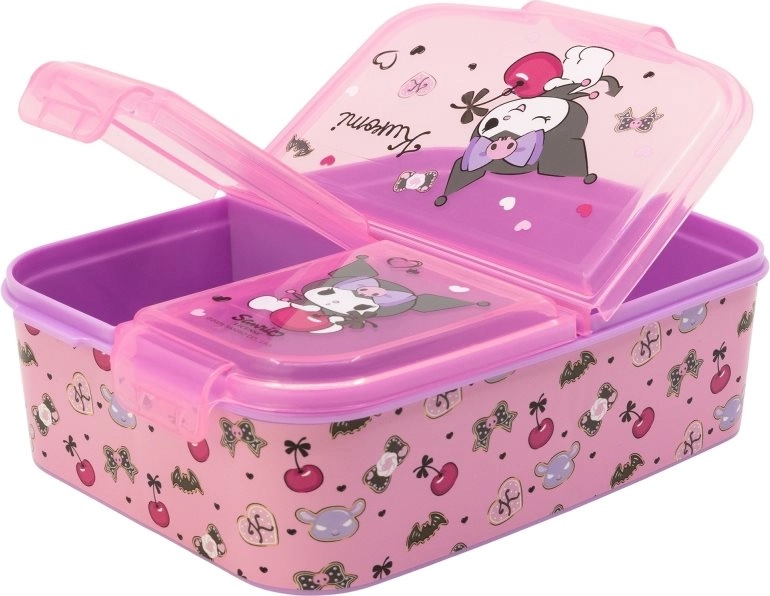 Praktiška priešpiečių dėžutė su KUROMI motyvu siūlo 3 atskirus skyrius tvarkingam maisto laikymui. Pagaminta iš patvarios medžiagos, be BPA, o oficiali licencija pradžiugins visus mažus gerbėjus. Idealu į mokyklą, žaidimų aikštelę ir išvykas.