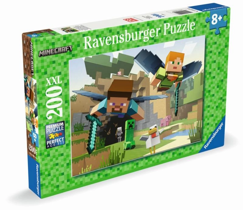 Pasinerkite į Minecraft pasaulį su 200 dalių dėlione, kuri pradžiugins tiek pradedančiuosius, tiek pažengusius dėliotojus. Ravensburger garantuoja tikslų išpjovimą, sodrias spalvas ir patvarų kartoną, todėl dalelės idealiai susijungia, o dėliojimas teikia malonumą.