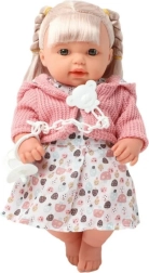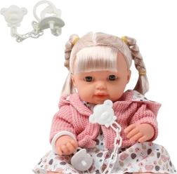 Dar vienas privalumas – realistiški garso efektai: lėlytė skleidžia juoko ir verksmo garsus, kurie pagyvina ir praturtina žaidimą. Lėlytė vilki spalvingą suknelę ir minkštą rožinį megztuką, kurį galima nusivilkti, taip atsiranda daugiau kūrybiškų žaidimo galimybių. Rinkinyje taip pat yra čiulptukas su grandinėle ir pakabuku, kad vaikas galėtų pasijusti tikru globėju. Pagaminta iš patvaraus ir saugaus plastiko, ji lengva, maloni liesti ir idealiai tinka kasdieniam glaudimui, priežiūrai ir bendroms pramogoms.