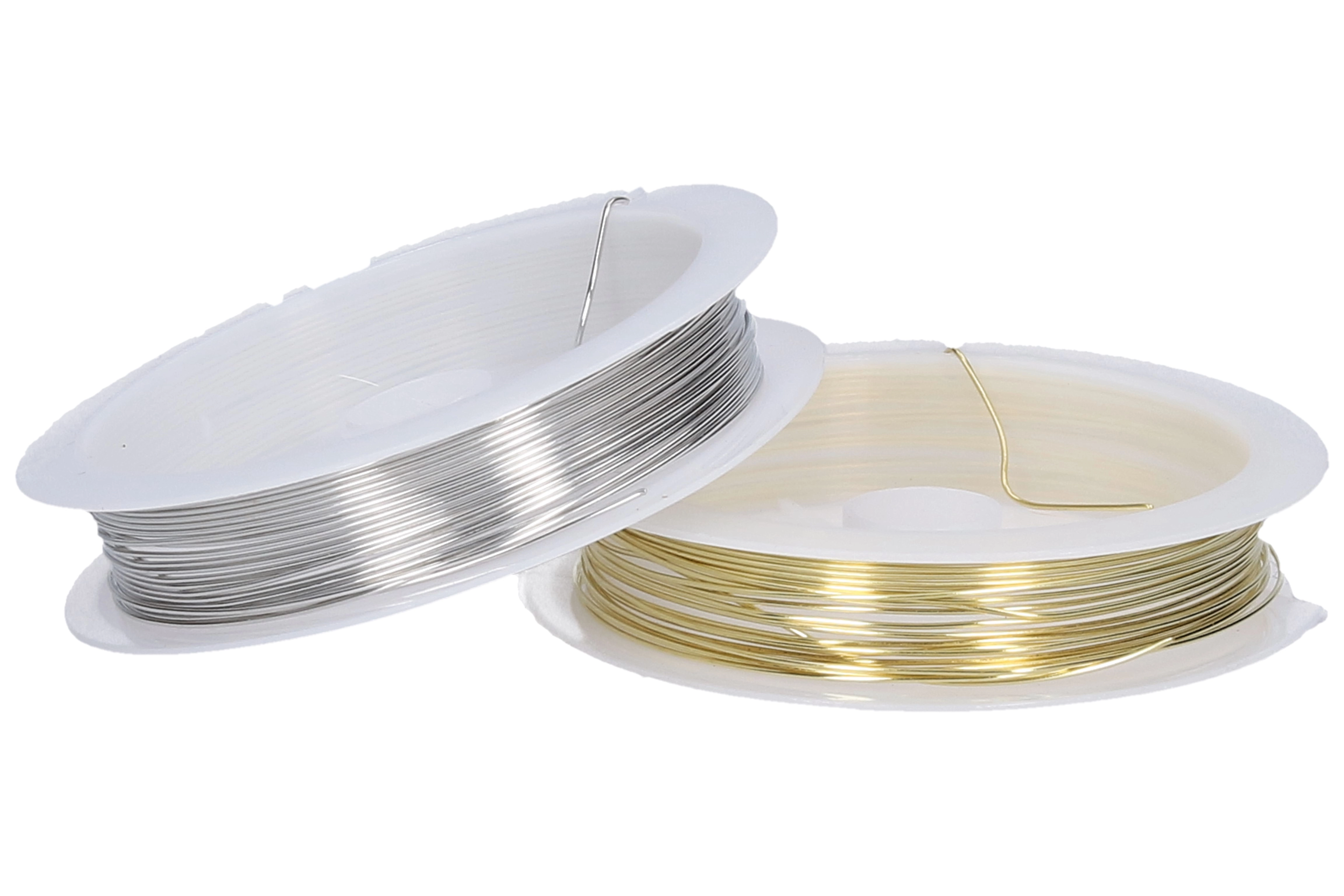 Universali 0,6 mm vielutė karoliukams, 4 m ilgio, patogi kūrybai ir smulkioms detalėms. Galimi du atspalviai – auksinis ir sidabrinis, idealiai tinka vėrimui ir papuošalų gamybai.